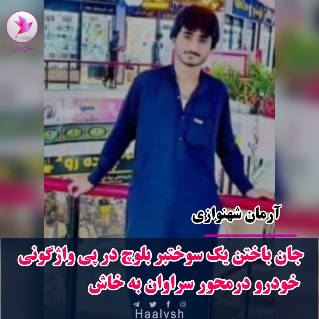 هویت این سوختبر بلوچ جانباخته:«آرمان شهنوازی» ۲۳ساله،فرزند کامران اهل و ساکن روستای خیرآباد شهرستان خاش توسط حال وش احراز شده است.