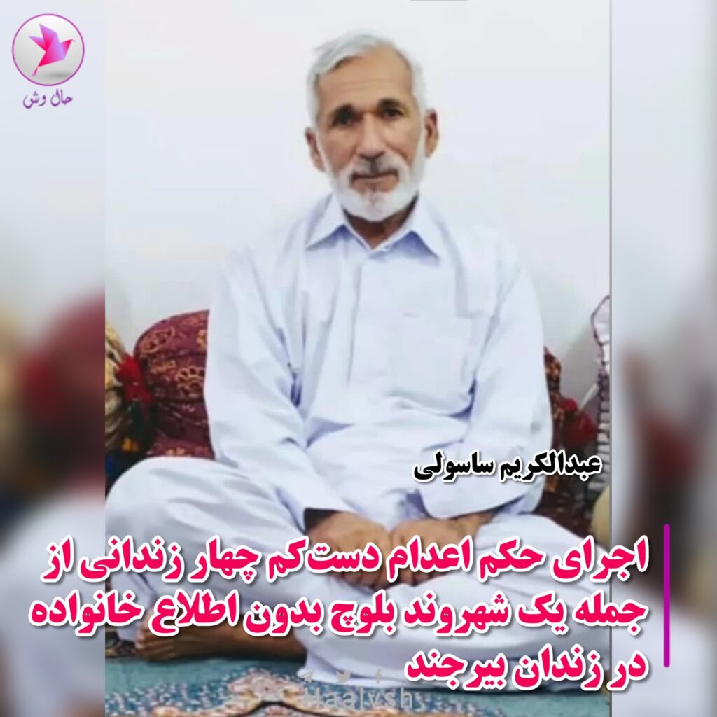 هویت شهروند بلوچ اعدامشده، « عبدالکریم ساسولی »، حدوداً ۶۰ ساله، متأهل و دارای هفت فرزند، اهل و ساکن زابل، توسط حال وش احراز شده است.